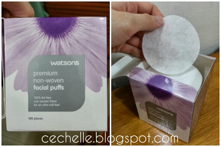 HOW TO APPLY: I like to apply the toner by using these air-laid facial puffs. I think it's better than using normal cotton pad because it doesn't soak up too much product. By using the facial puff, it helps to remove any remaining dirt or make up on my face. As you can see from the picture below, I got them from Watsons. The air-laid facial puffs is made from non-woven fabric. Each box has 90 folded sheets. I'll cut them into two so each box I'll get 180 pieces.